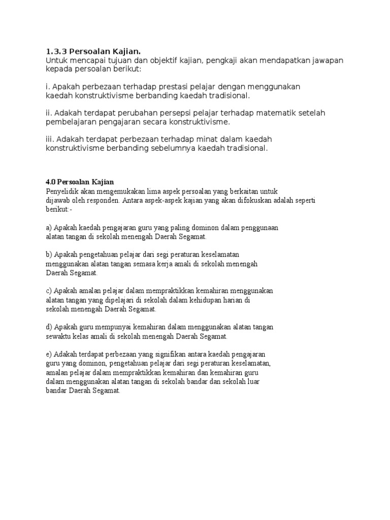 Pernyataan Masalah Persoalan Kajian Objektif Hipotesis Pdf